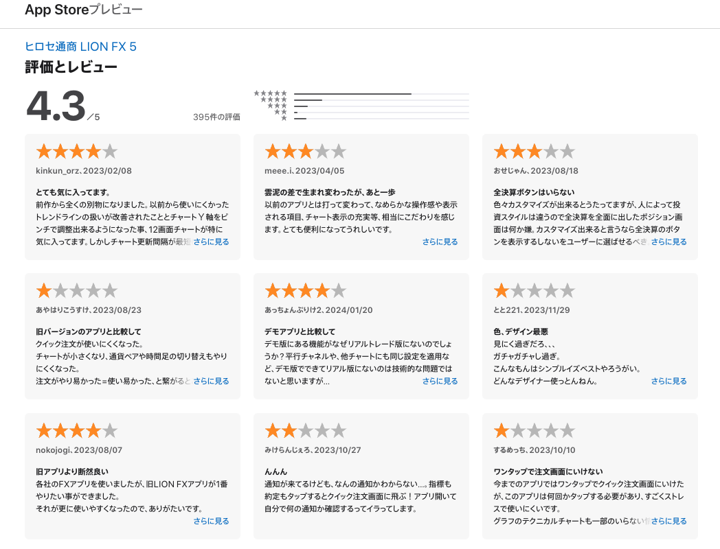 ヒロセ通商(LION FX)のアプリの評価を調べました。