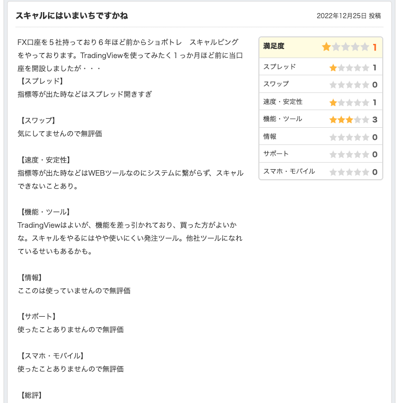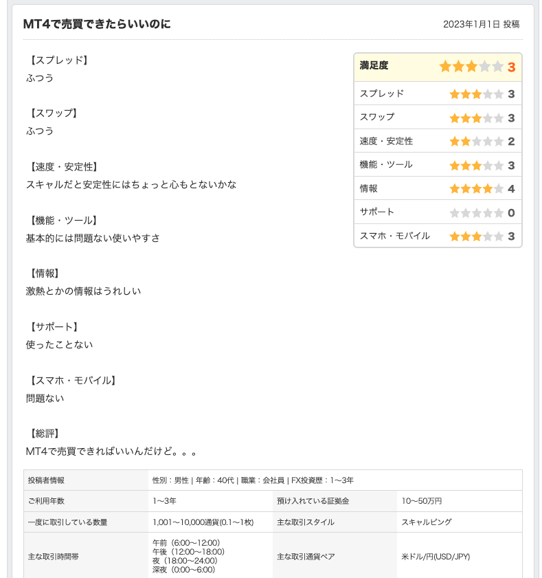 スプレッドが狭くて良いの意見の他に、サポートが充実していてありがたいという声も多かった。